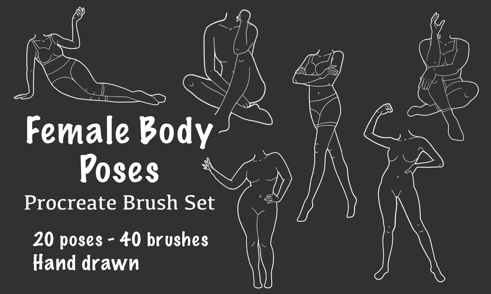 Female Body Poses brush set for procreate! Use in your illustrations or as bases for pin-up girls! Customize with clothing of your choice, these blank slates give you the freedom to customize and truly make into your own pieces!